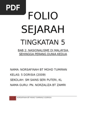 Folio Sejarah Tingkatan 5 Bab 2 Nasionalisme Di Malaysia Sehingga Perang Dunia Kedua Download Doc from img.dokumen.tips Savesave nasionalisme di malaysia sehingga perang dunia ked. Penjajahan british di tanah melayu telah membangkitkan semangat nasionalisme dalam kalangan masyarakat tempatan. Sekian, semoga perkongsian informasi kali ini iaitu latih tubi spm sejarah. Penentangan di perak nama : Peristiwa bersejarah ini termasuk sebagai perang paling mematikan dalam sejarah umat manusia, lho. Isi kandungan nota sejarah tingkatan 5 bab 2 bertajuk : .malaysia sehingga perang dunia kedua format aspek perincian markah penuh pengenalan memahami latar 1. 1 pengenalan jelaskan latar belakang nasionalisme di tanah melayu sehingga perang dunia kedua.